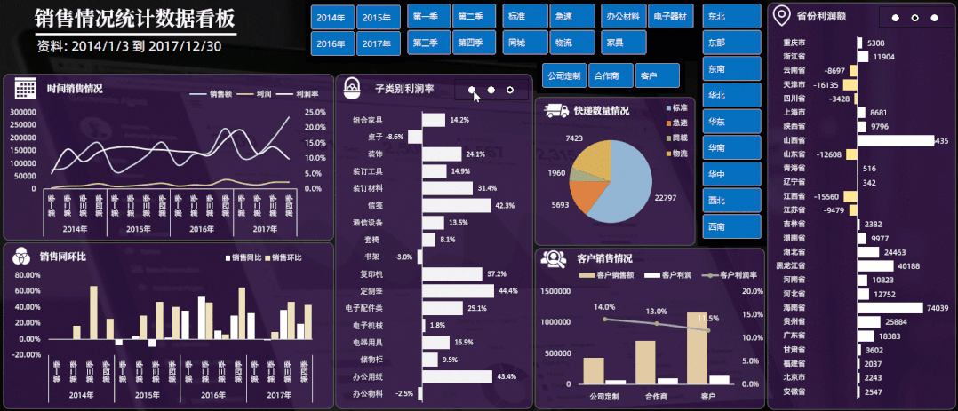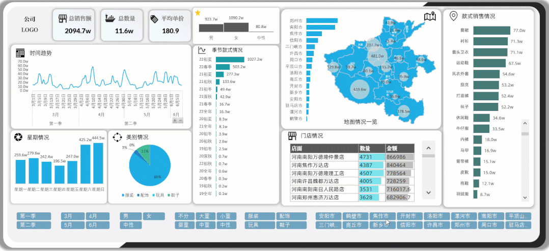 多页分类别展示筛选销售数据看板!