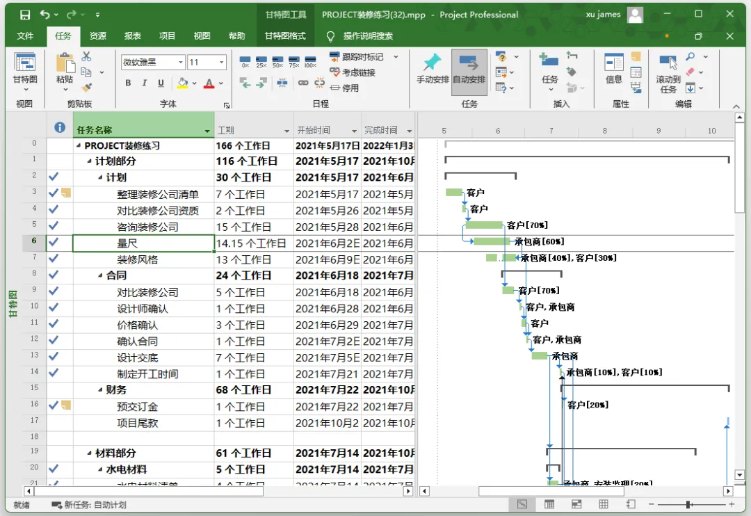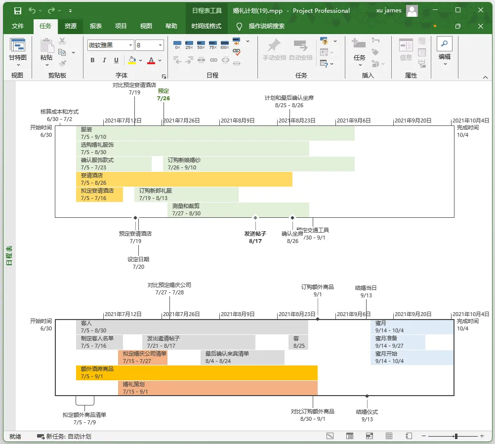 通过任务的关系制作甘特图,
