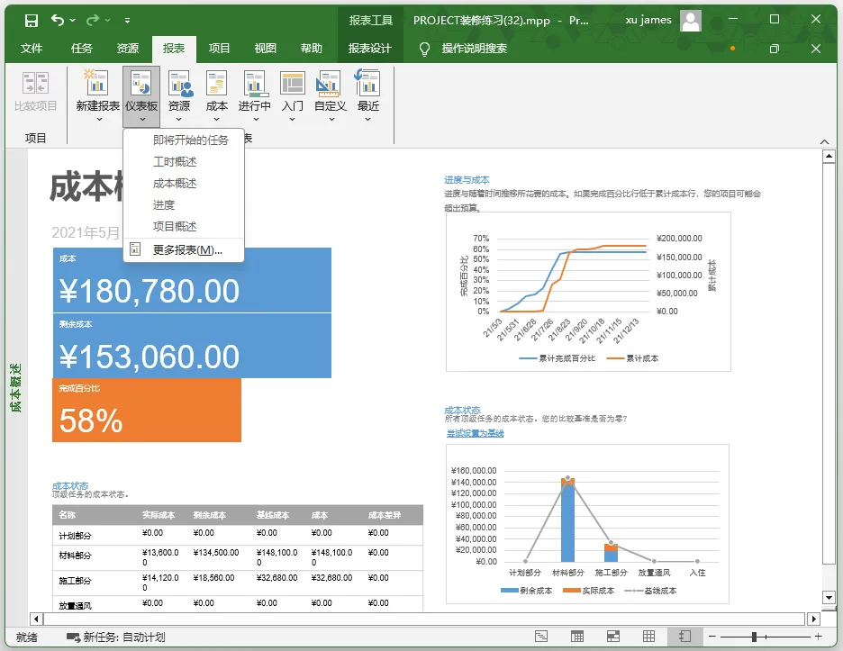 会计损益类型的数据看板: