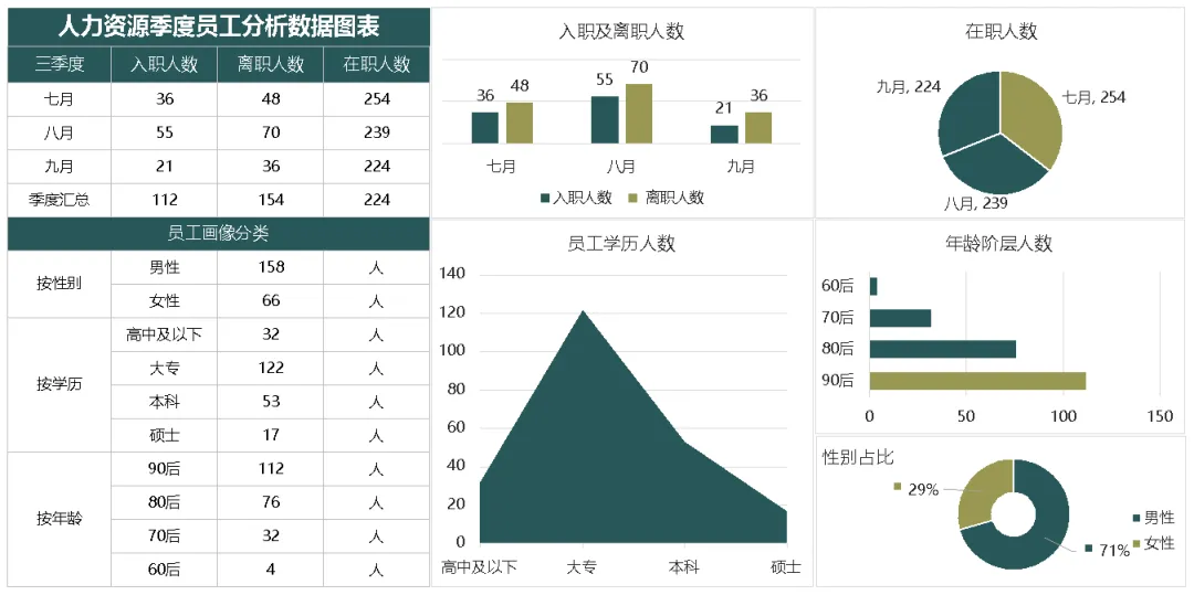 当前位置:首页>excel模板>人力资源季度员工分析数据图表(Excel模板)