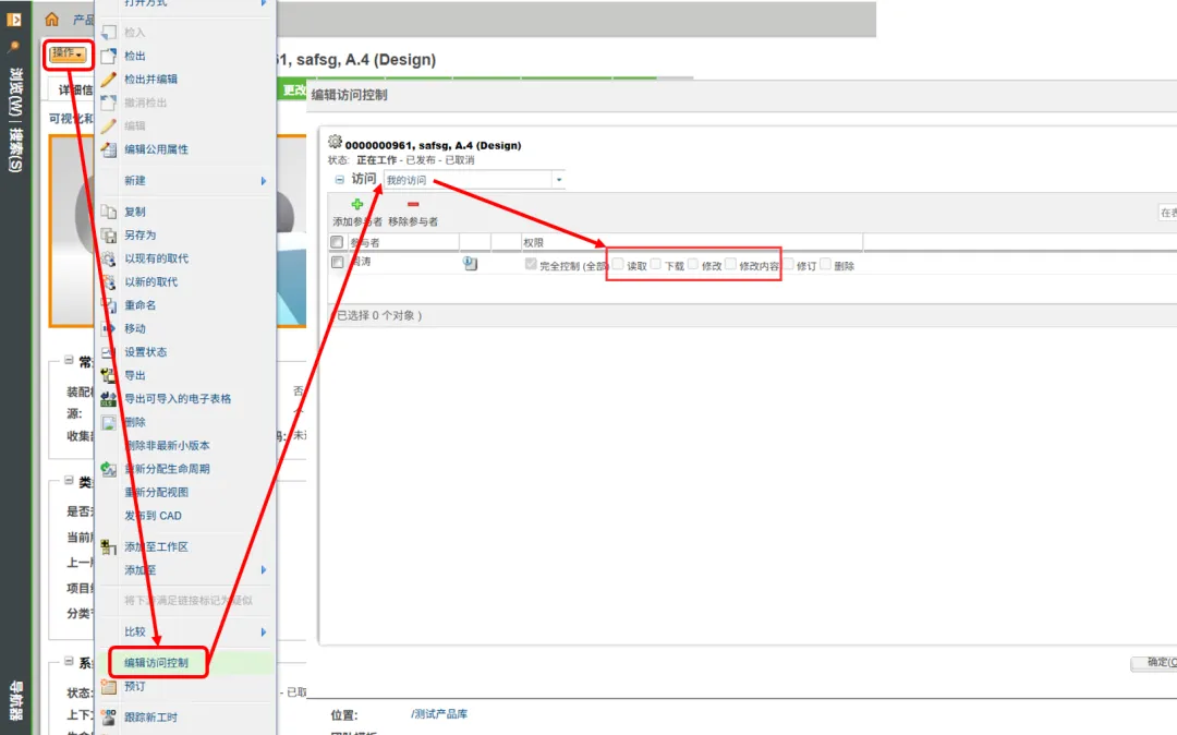 自查方法:登录系统进入父项物料详细信息页面,点击“操作-管理安全性”能看到物料修改权限。导入作业与基线,在实际操作时再检查。