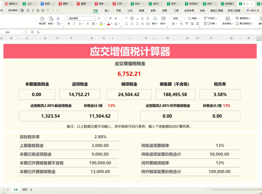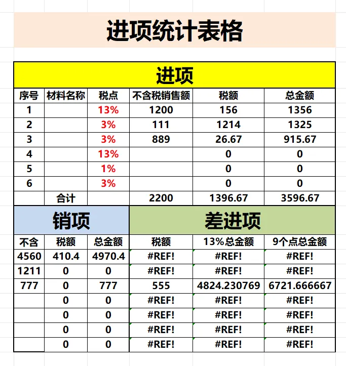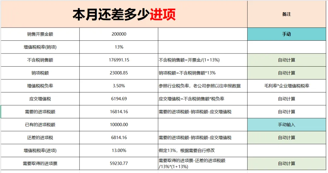 自动计算本月还差多少进项