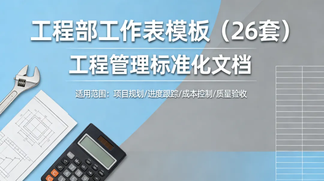 工程管理头绪繁杂、台账繁多、流程严谨,一份规范好用的模板既能规避工作疏漏,又能大幅提升办公效率。这套工程部全套26个工作表模板聚焦工程现场管理、内业资料、沟通协调全流程,覆盖制度规范、进度计划、工作汇报、业务联系单四大核心板块,摒弃冗余格式、剔除无效内容,真正做到贴合实操、即下即用,完美适配房建、市政、基建等各类工程项目的工程部日常运转。