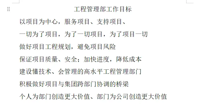 1. 协助工程管理部领导做好对内协调、对外接待工作:协助领导协调公司各部门间、各项下属公司,对外协调施工单位间的工作。做好与有关部门及外来人员的联络接待工作,树立企业形象。