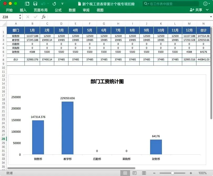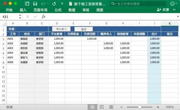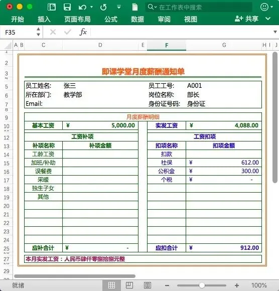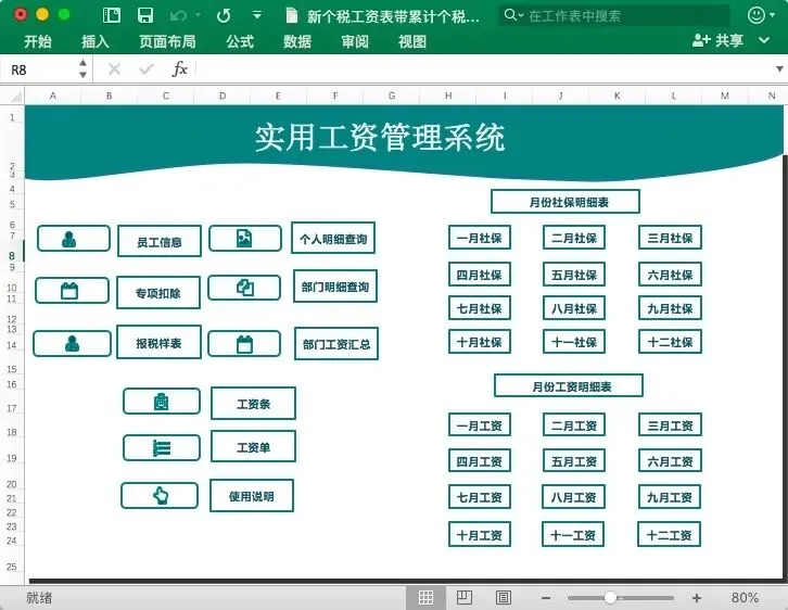 本套资料合计1份Excel模板+1份视频解说。Excel模板覆盖工资表、社保表、专项扣除、个人/部门明细查询、工资条、工资单,全年12个月合计一份Excel表格,方便查询和统计。带完整函数公式,录入数据自动生成。部分表格内容截图展示如下: