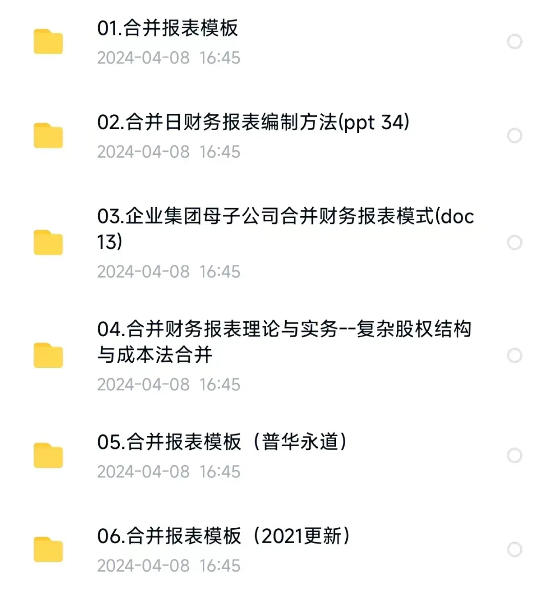 要问那些年会计被什么虐得最深,合并报表估计是头号噩梦:难度大、问题多、一言不合就翻车。不过,编制合并报表虽然痛苦,却是会计人员非常重要的技能。合并报表深受重视,它反映了集团整体财务状况和经营情况,是企业经营决策的重要参考依据,其合理的编制,甚至于编制前的交易设计,都具有大量技巧。岁末年初是企业财务人员一年中最繁忙的时候,不但要清查资产、核实债务,而且要对账、结账一直到最后编制财务会计报告…速领取:2024年4月13日0时之后或者不方便转发可点底部 “阅读原文”领取合并报表编制方法&流程-合并财务报表模板&底稿─合并报表资料整理─合并报表视频及讲义(实操)-合并报表视频(理论-合并报表视频教程集-其他合并报表文本------