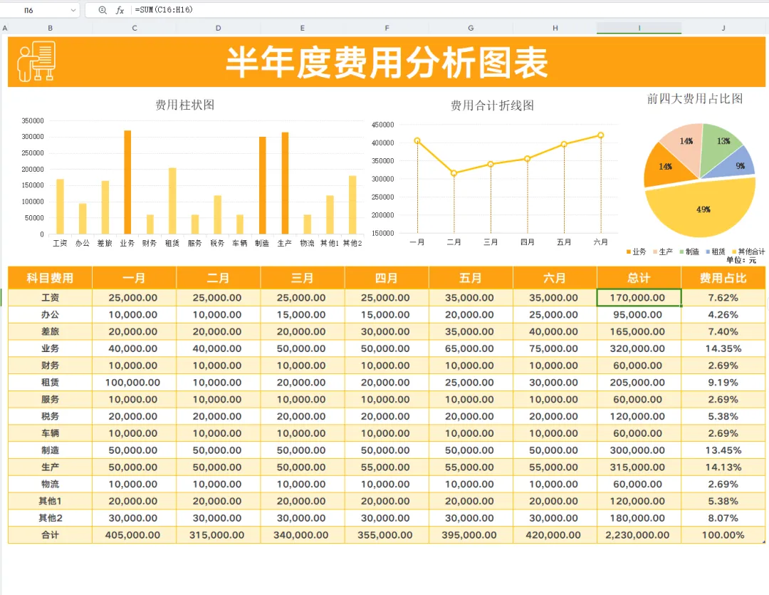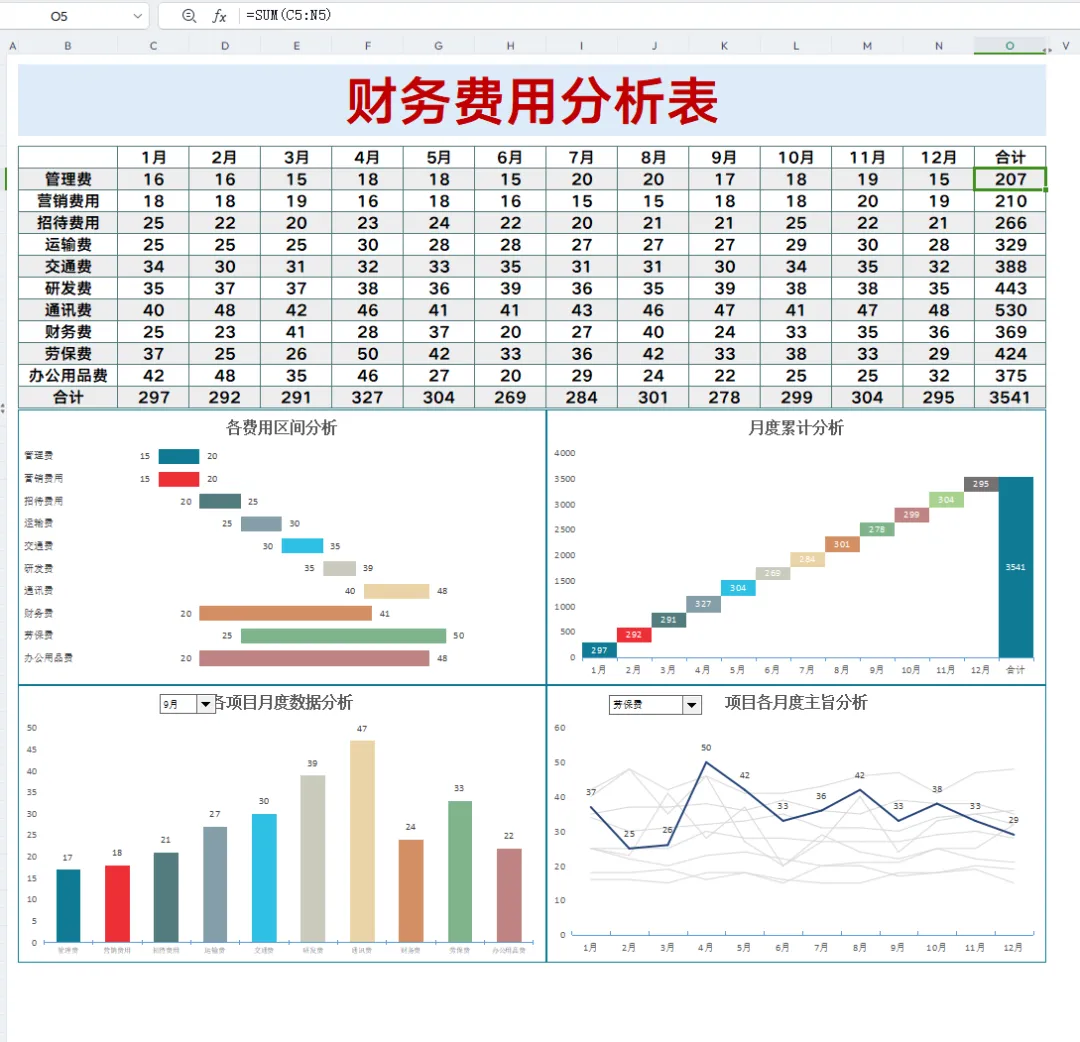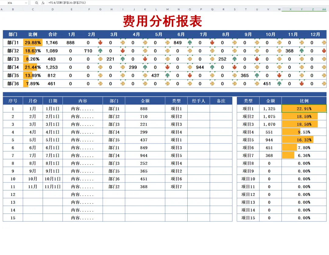 原来这就是费用分析报表模板啊!费用收支一目了然,追踪溯源清晰可见!直接套用可编辑!