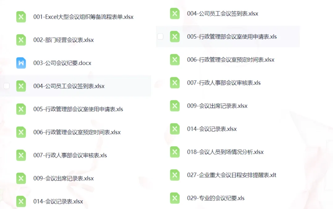 会议管理Excel表格模板合集,包含-签到表,通知单,申请表,会议纪要,座位表等办公模板合集汇总,助力推进会议管理,工作直接套用